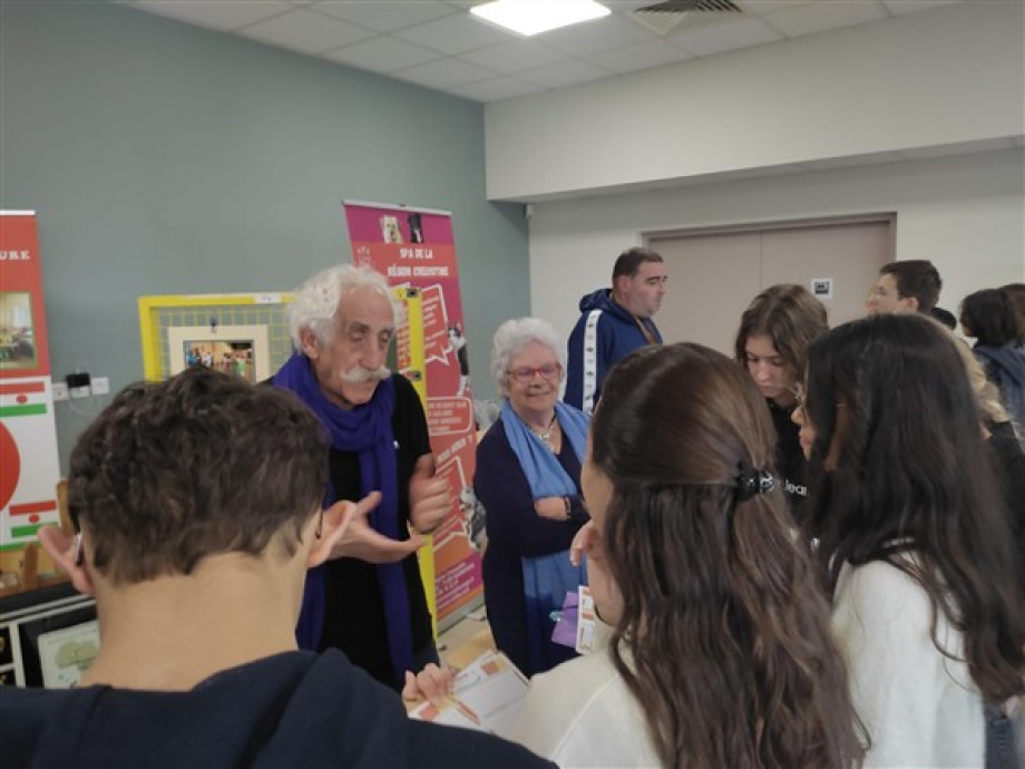 Plusieurs associations étaient invitées à participer au Forum de l'Engagement et de la Solidarité au lycée Léon Blum du Creusot, pour rencontrer des élèves de classe de seconde , dont la classe avec laquelle nous travaillons dans le cadre du Tandem Solidaire. CBSSN avait répondu à cette demande de la professeur de cette classe, Mme Anne Sophie Birembaut. Après midi très intéressant, vu l'implication et la curiosité des étudiants. A refaire l'année prochaine .....